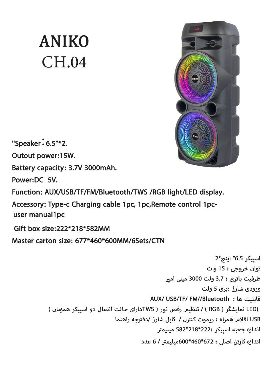 اسپیکر بلوتوث قابل حمل آنیکو مدل CH.04