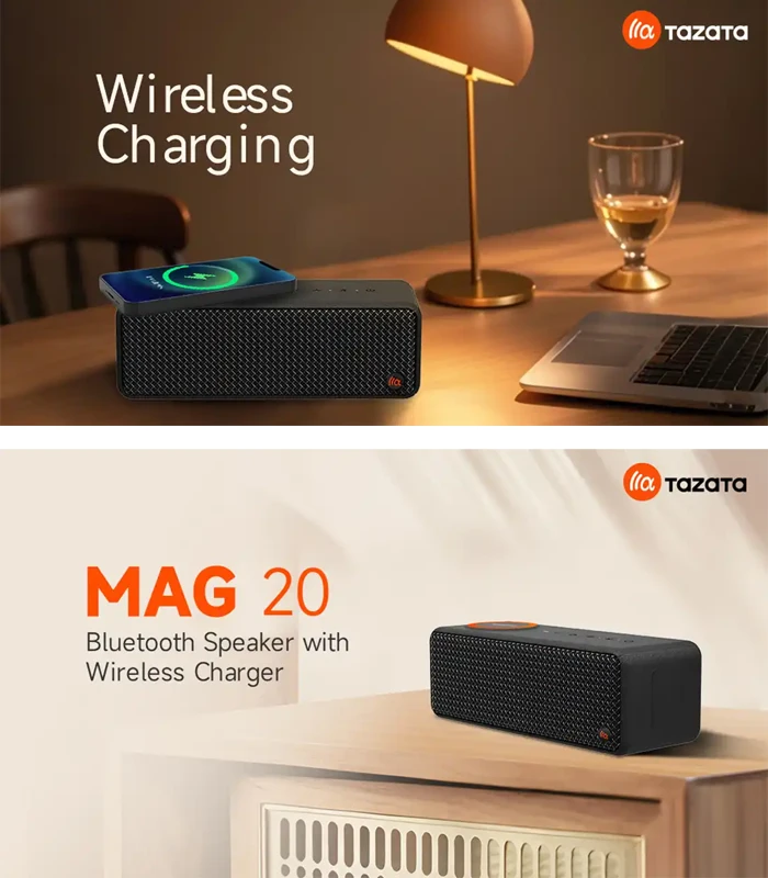 اگر به دنبال یک اسپیکر قابل حمل با کیفیت صدای مناسب و قابلیت پاوربانک بی سیم برای شارژ دستگاه های خود هستید، اسپیکر و پاوربانک تازاتا MAG 20 Black با ویژگی های منحصر به فرد خود، تجربه ای متفاوت را برای شما به ارمغان می آورد. این محصول دو منظوره با طراحی مدرن و وزن مناسب، به راحتی قابل حمل است و می توانید آن را در هر مکانی همراه خود داشته باشید.