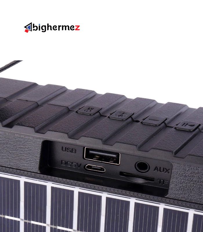 | توضیحات | اسپیکر قابل حمل مناسب کمپینگ ,5 وات ,BT5.0 ,TF ,AUX ,USB ,قابلیت تماس ,رادیو ,قابلیت TWS ,باتری 1200 میلی آمپر ساعت ,با پنل خورشیدی، چراغ قوه |