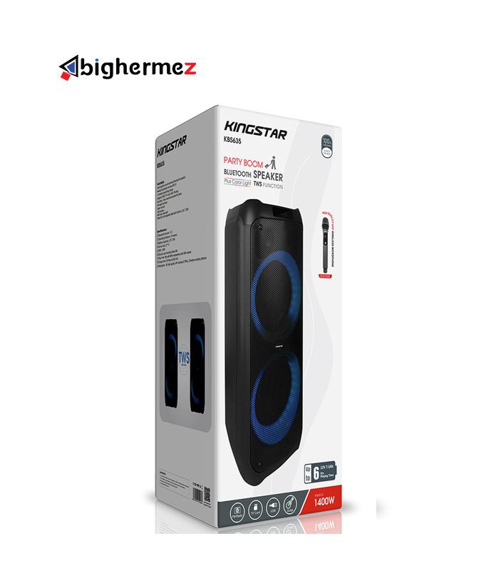 جذابیت‌ بصری اسپیکر بلوتوث قابل حمل کینگ استار مدل KBS635  باید به نورپردازی زیبا و متنوع LED آن اشاره کنیم. که توجه هر کاربری را به خود جلب می‌کند. ابعاد این محصول نیز 862x320x340 میلیمتر و وزن آن نیز 16500 گرم می‌باشد. مدت زمان شارژ این کالا حدود 5 الی 6 ساعت و زمان ممکن جهت استفاده از این اسپیکر نیز حدود 5 ساعت تا 80٪ میزان ولوم پخش موزیک و 6 ساعت با 50٪ میزان ولوم خواهد بود.