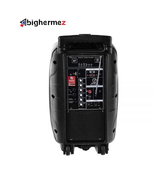 - اسپیکر چمدانی با قابلیت شارژ و استفاده بصورت پرتابل این امکان را دارد. که در هر لحظه و هر مکانی از امکانات متعدد این محصول استفاده نمایید. این اسپیکر دارای یک بلندگو 15 اینچی میدووفر و یک تیوتر 4 اینچی می باشد. که صدا را در وضوح قابل قبولی از پخش کننده های مختلف میتواند دریافت کند از جمله بلوتوث و فلش و کارت حافظه همچنین این اسپیکر یک میکروفون همراه خود دارد که به صورت بیسیم به آن متصل می شود و قابلیت کارائوکه دارد.
