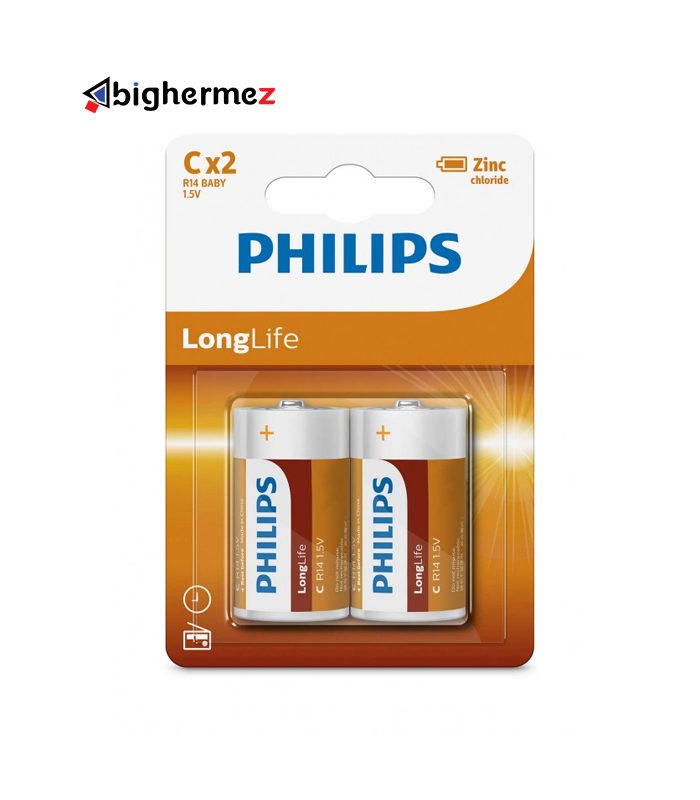 - باتری متوسط 2 عددی سایز C فیلیپس معمولی مدل R14L2B/97