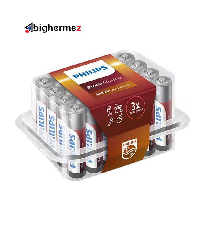 باتری نیم قلم 24 عددی پاور آلکالاین فیلیپس مدل LR03P24P/97