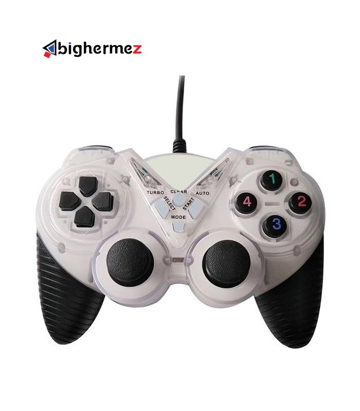 دسته بازی تک شوکدار مچر مدل MR-59  با طراحی فانتزی در رنگ بندی مشکی، قرمز، سبز، آبی، سفید. مناسب برای بازی های رایانه ای، مخصوص گیمرهای حرفه ای و علاقمندان و اشخاصی که حرفه ای بازی های رایانه ای را دنبال میکنند است.