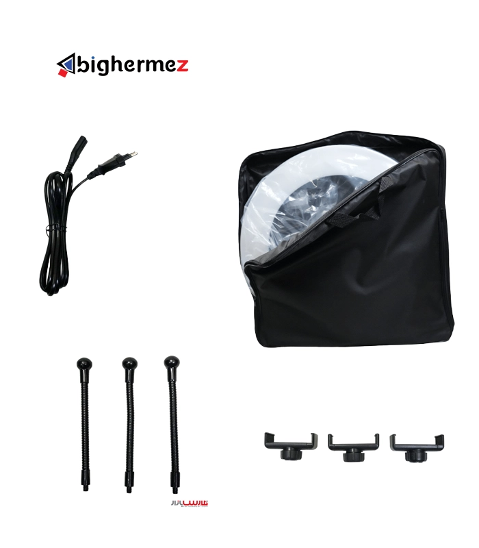 رینگ لایت ۵۶ سانتی‌متری با قابلیت نوردهی RGB، ابزاری حرفه‌ای برای عکاسی، تولید محتوا، آرایشگری و استریمینگ است. این رینگ‌لایت، نوری یکنواخت و قابل تنظیم فراهم می‌کند که باعث بهبود کیفیت تصاویر و ویدیوهای شما می‌شود.