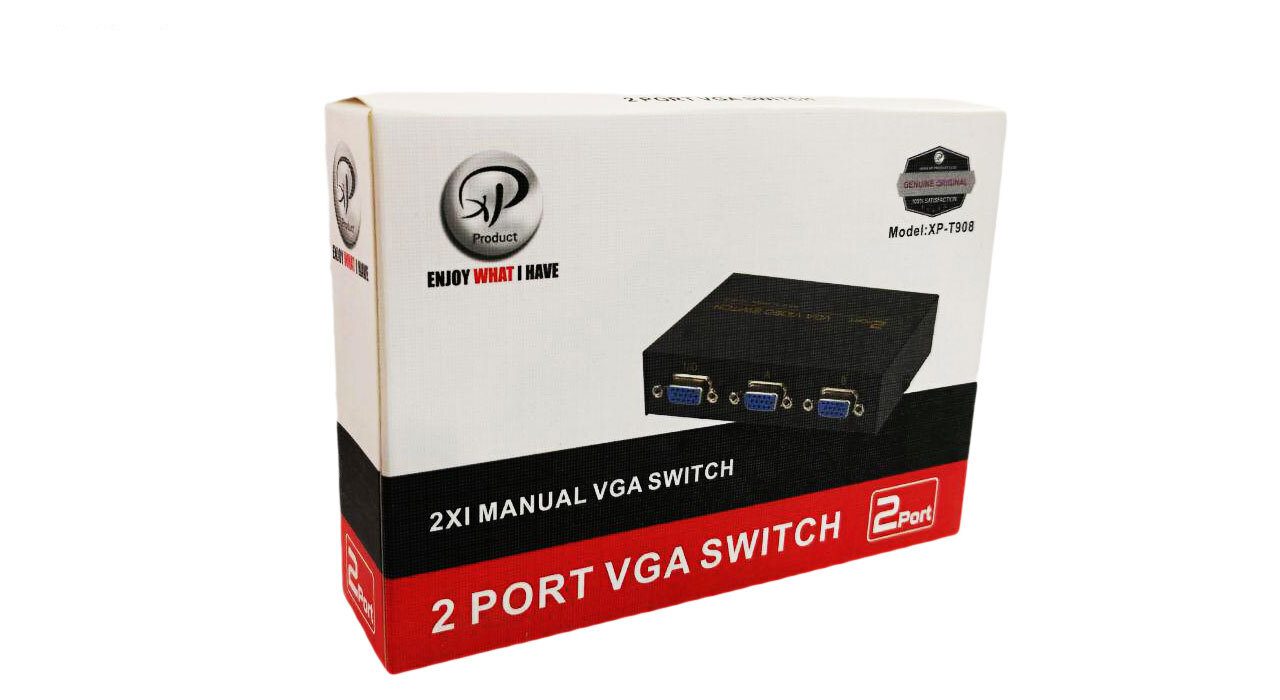 VGA سوئیچ 2 پورت XP یک دیتا سوئیچ با درگاه VGA بوده که برای اتصال 2 دستگاه دوربین مداربسته. (DVR) و کیس و یا اتصال یک مانیتور و دوکیس یا یک کیس و دوخروجی مانند مانیتور یا ویدئو پروجکتور استفاده می شود. با این دستگاه بین خروجی های مختلف پورت VGA می توان با فشردن دکمه سوییچ کرد.