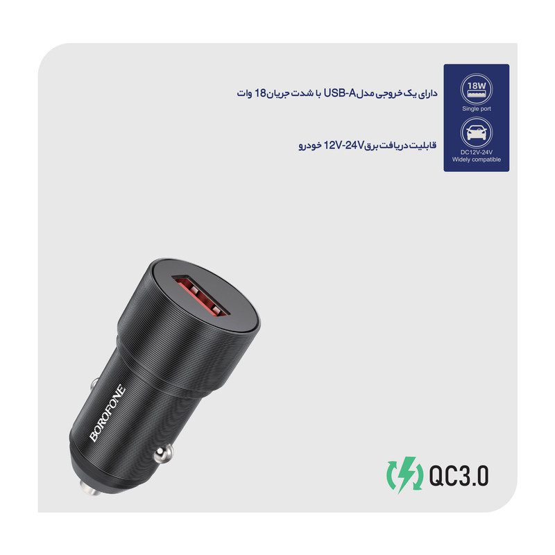 دارای یک درگاه خروجی مدل USB-A قابلیت انتقال شارژ تا توان ۱۸ وات برای تلفن‌های همراه پشتیبانی از پروتکل‌های شارژ سریع (پروتکل ACP برند سامسونگ و پروتکل FCP برند هواوی) پشتیبانی از فناوری QC ۳.۰ برای شارژ سریع دستگاه هوشمند پشتیبانی از فناوری Overvoltage Protection جهت محافظت در برابر ولتاژ بیش از حد پشتیبانی از فناوری Overcurrent Protectionجهت محافظت در برابر بار اضافی پشتیبانی از فناوری Multiple Circuit Protection برای حفاظت از مدارهای الکتریکی پشتیبانی از فناوری SMART ID جهت شناسایی هوشمند دستگاه و سازگاری با آن پشتیبانی از فناوری Heat Resistance Over جهت محافظت در برابر حرارت و سوختگی پشتیبانی از فناوری Over Power Protection جهت محافظت از سیستم داخلی دستگاه شارژر فندکی در برابر خرابی و حرارت پشتیبانی از فناوری Fast Charging technology برای انتقال شارژ بصورت شارژ سریع دارای طراحی زیبا و منحصر به فرد دارای بدنه با طراحی آلومینیوم و زیبا ((Aluminum Shell قابلیت دریافت شارژ خودرو با جریان متناوب DC ۱۲ – ۲۴V قابلیت انتقال شارژ با جریان‌های متنوع (۵ ولت/ ۳ آمپر، ۹ ولت/ ۲ آمپر، ۱۲ ولت/ ۱.۵ آمپر) جنس بدنه ABS + PC مقاوم در برابر حرارت و گرما قابل استفاده با کابل شارژ میکرو.تایپ سی.لایتنینگ دارای گواهینامه QC PASS جهت تایید بررسی و آزمون‌های کیفیت سنجی دارای تمام استانداردهای بین المللی