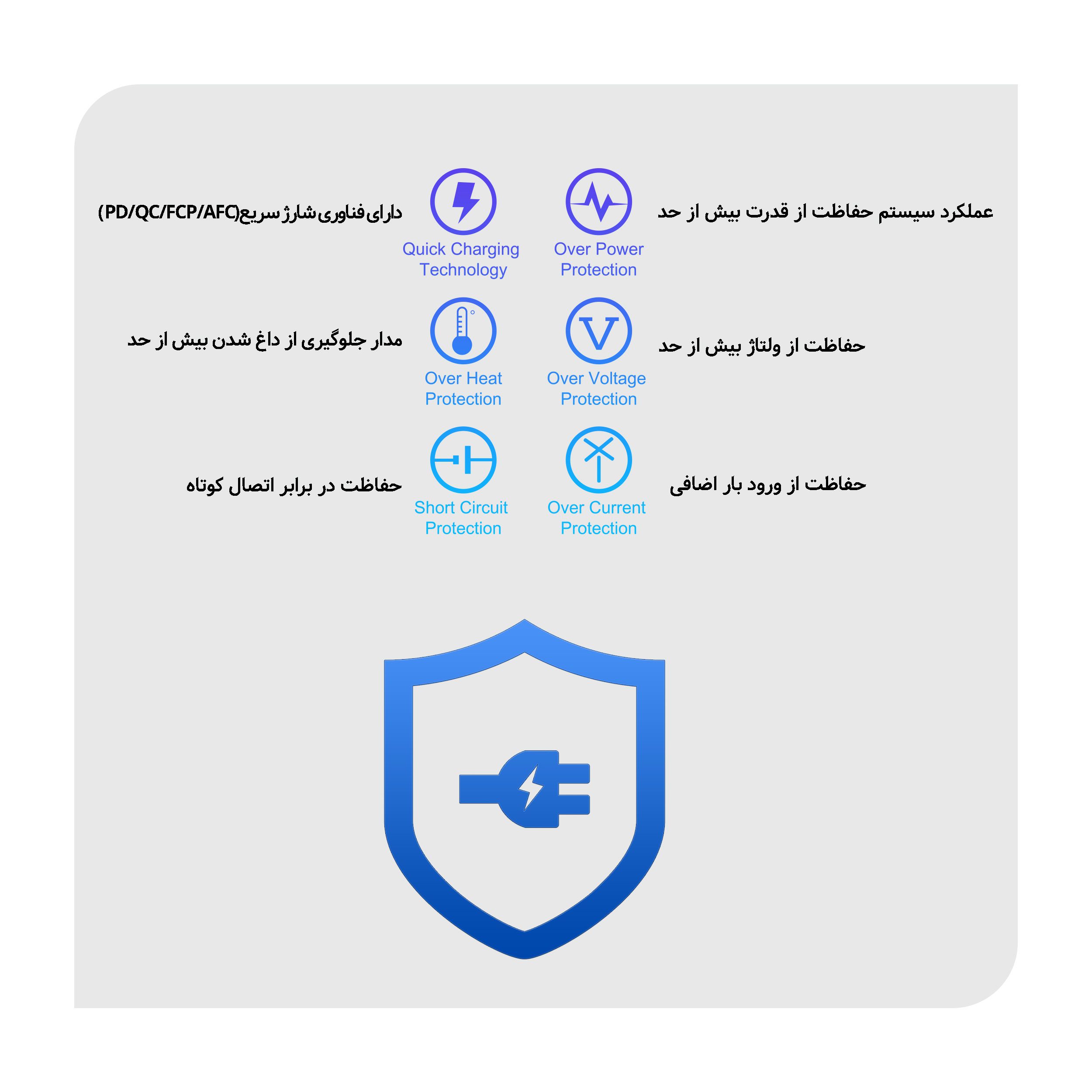 • قابلیت‌های شارژر:فناوری Quick Charge ۳.۰