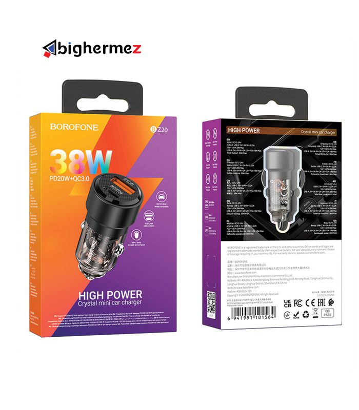دارای ۲ درگاه خروجی مدل USB-A- ۱۸W (FCP/AFC /QC۳.۰/۱۸W) USB-C ۲۰W(PD/QC/FCP/AFC) قابلیت شارژ تا توان ۳۸ وات برای تلفن همراه قابلیت شارژ تبلت وتلفن همراه و …. قابلیت شارژ FASTهمزمان ۲ دستگاه هوشمند دارای ولتاژ متنوع در خروجی USB-A: ۵.۰V/۳.۰A, ۹.۰V/۲.۰A, ۱۲.۰V/۱.۵A دارای ولتاژ متنوع در خروجی USB-C: ۵.۰V/۳.۰A, ۹.۰V/۲.۲۲A, ۱۲.۰V/۱.۶۷ A پشتیبانی از فناوری Overcurrent Protectionجهت محافظت در برابر بار اضافی پشتیبانی از فناوری Over Heat Protection برای جلوگیری از بالا رفتن غیر مجاز حرارت پشتیبانی از فناوری Overvoltage Protection جهت محافظت در برابر ولتاژ بیش از حد پشتیبانی از فناوری Short circuit Protectionجهت جلوگیری از اتصال کوتاه دارای گواهینامهی Safty Certificate Protected جهت ایمنی شارژر امکان دریافت برق خودرو متناوب ۲۴-۱۲ ولت منطبق با تمامی خودروها دارای گواهینامه QC PASS جهت تایید بررسی و آزمونهای کیفیت سنجی جنس بدنه: ضد شعله PC + آلیاژ آلومینیوم دارای تمام استانداردهای بینالمللی |