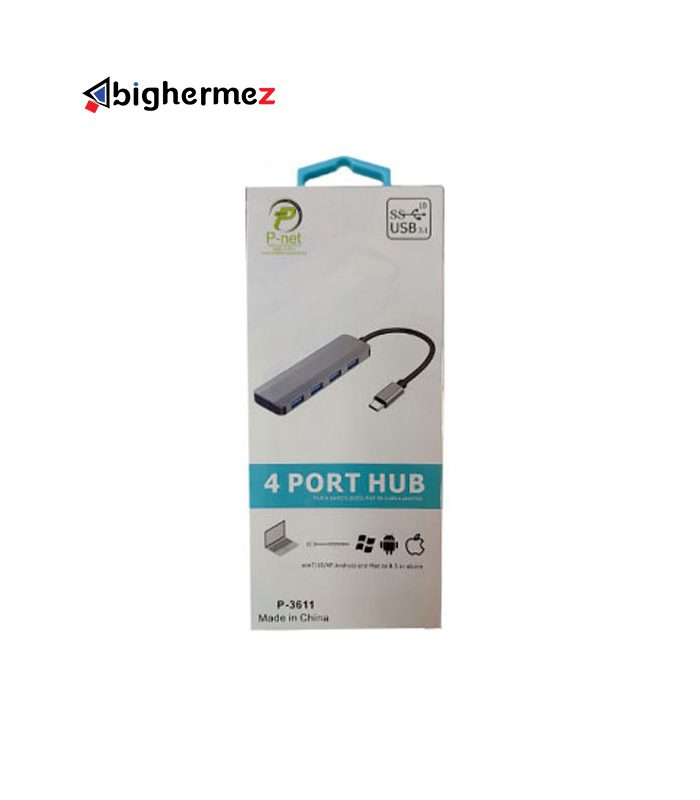- هاب 4 پورت USB3 تایپ سی پی نت مدل P-3611 مناسب لپ تاپ هایی که دارای ورودی تایپ سی هستن مناسب و بسیار کاربردی میباشد.