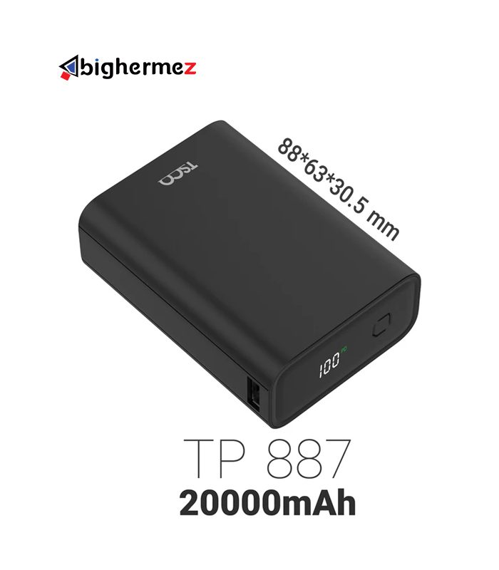 پاوربانک تسکو مدل TP 887 | همیشه شارژ باش! پاوربانک ها به عنوان یکی از لوازم جانبی محبوب برای تلفن همراه و دستگاههای الکترونیکی دیگر، اهمیت زیادی پیدا کردهاند. پاوربانک تسکوTP 887 یکی از محصولات برجسته و با کیفیت در این دسته است که توانسته رضایتمندی بسیاری از کاربران خود را جلب کند. پاوربانک تسکو TP 887 با ظاهری شیک و زیبا طراحی شده است. با ابعاد کوچک و وزن سبک، آن را میتوان به راحتی در کیف یا جیب حمل کرد. بدنه از جنس آلومینیومی و با مقاومت در برابر خط و خش، پاوربانک TP 887 ظاهری مقاوم و مستحکم دارد. یکی از ویژگیهای برجسته پاوربانک TP 887، ظرفیت بالای باتری آن است. با ظرفیت 20,000 میلیآمپر ساعت، میتوانید گوشی خود را تا چند بار شارژ کنید. پاوربانک تسکو مدل TP 887 همچنین، این پاوربانک با دو پورت USB قابلیت شارژ دو دستگاه به صورت همزمان را داراست. به علاوه، پاوربانک TP 887 دارای یک درگاه USB Type-C به عنوان درگاه ورودی است. پاوربانک TP 887 همچنین با قابلیت شارژ سریع Quick Charge 22.5W به همراه محافظتهای چندگانه برای جلوگیری از برقراری اتصال کوتاه، برقراری ارتباط نامناسب و حرارت زیاد، امنیت شارژ دستگاههای شما را تضمین میکند. در ادامه با TP 887 از تسکو بیشتر آشنا خواهیم شد. از همراهی شما سپاسگزاریم. مشخصات فنی پاوربانک تسکو مدل TP 887 پاوربانک جذاب تسکو با مشخصات فنی فوقالعاده برای شارژکردن گوشی همراه شما آماده است. باتری استفاده شده در TP 887 از نوع لیتیوم پلیمری بوده که با ظرفیت 20000 میلیآمپرساعت میتواند تا چند بار گوشی شما را شارژ کند. جهت داشتن اطلاعات بیشتر در مورد این پاوربانک ولتاژ و جریان ورودی از که از پورت Type-C است به ترتیب برابر V2.4A,9V2A,12V1.5A5 است. جریان و ولتاژ توان خروجی در این پاوربانک در پورت USB A برابر V4.5A,9V2A, 12V1.5A QC 22.5W5 و برای درگاه USB-C نیز به صورت V3A, 9V2.22A,12V1.67A (PD 20W)5 است.