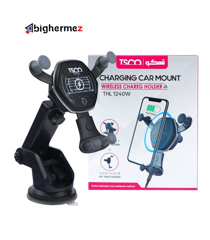 با پایه نگهدارنده‌ی تسکو مدل «THL 1240W» بدون نگرانی از گوشی موبایل‌تان داخل خودرو استفاده کرده و آن را به طور ثابت روبه‌روی خود قرار دهید. این محصول خوش ساخت برای نگهداری از انواع گوشیهای موبایل مناسب خواهند بود. مدل «THL 1240W» از سری محصولات تسکو پایه‌ای سیلیکونی دارد که به آسانی به داشبورد یا شیشه جلوی خودرو متصل خواهد شد. همچنین این پایه امکان چسبیدن و محکم قرار گرفتن روی دیگر سطوح نسبتا صاف مانند میز را هم خواهد داشت. یکی دیگر از ویژگی های بارزی که در این مدل از هولدر های شرکت تسکو دیده می شود، امکان شارژ بی سیم(وایرلس) گوشی موبایل می باشد. می توانید با قرار دادن گوشی موبایل خود بر روی این هولدر، علاوه بر قابلیت نگهداری، از قابلیت شارژ بی سیم این مدل نیز استفاده نمایید. برای استفاده از این مدل کافی است پایه را با استفاده از قسمت سیلیکونی آن به داشبورد خودرو متصل کنید. سپس از طریق دکمه که در پشت تکیه گاه موبایل، بازوهای تنظیم شونده آن را نسبت به اندازه موبایل خود باز نموده و گوشی همراه خود را رو آن وصل کنید. پایه نگهدارنده «THL 1240W» تسکو برای استفاده در خودرو بسیار مناسب است و اگر هنگام رانندگی از تماس‌های ویدیویی یا اپلیکیشن های مسیریابی استفاده می‌کنید بهتر است گوشی موبایل خود را در این پایه قرار دهید تا رانندگی ایمن‌تری داشته باشید. نحوه اتصال گوشی به هولدر : از طریق گیره های نگهدارنده جاذبه ای (زمانی که گوشی روی پایه پایینی قرار می گیرد ، دو بازویی که در طرفین تلفن همراه قرار دارند، به همان اندازه که گوشی وزن خود را روی پایه قرار می دهد 4، بازوها به گوشی نزدیک شده و آن را نگه می دارند)