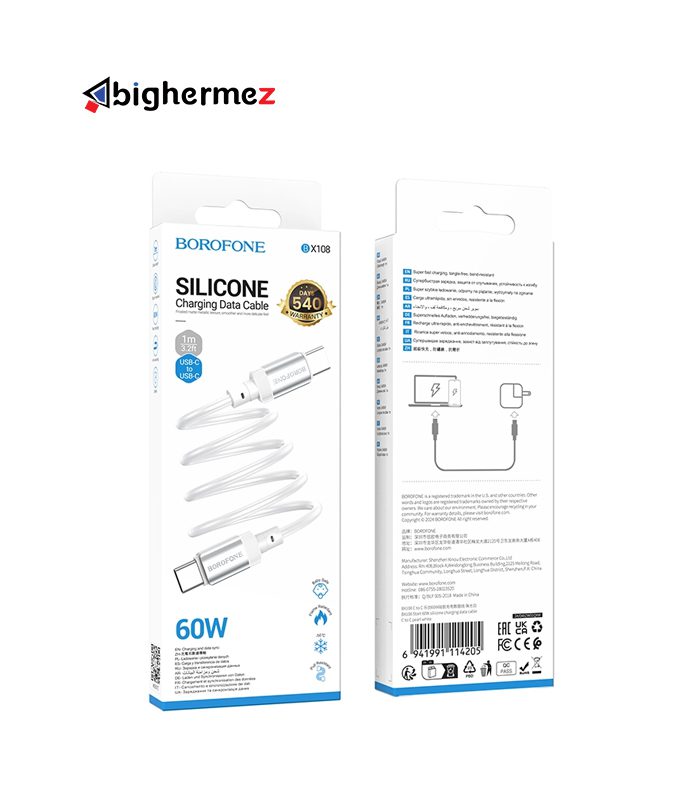 کابل شارژ دوسر TYPEE-C 60W بروفون مدل BX108