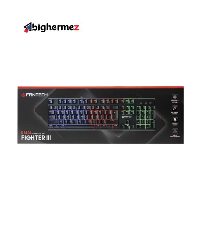 کیبورد باسیم مخصوص بازی فنتک مدل FIGHTER III K614L با 104 کلید و سوئیچ‌های ممبران  است که تجربه تایپ نرم و بی‌صدایی را فراهم می‌کند. این ویژگی برای گیمرهایی که جلسات طولانی بازی دارند یا در محیط‌های آرام کار می‌کنند، بسیار مناسب است.