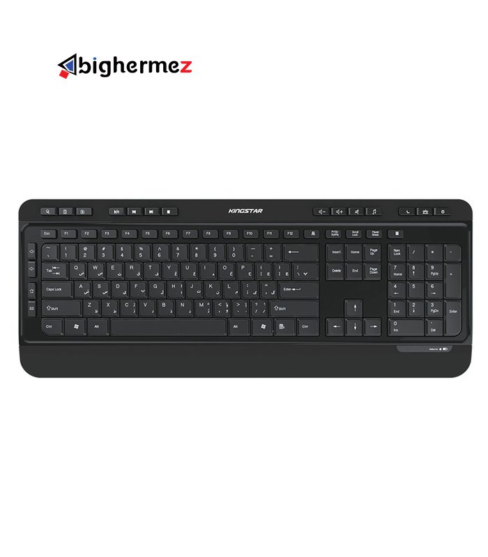 • کیبورد بیسیم کینگ استار مدل KB97W، بدون سیم و اتصال آن از نوع دانگل USB (2.4 گیگاهرتز) می‌باشد. این کیبورد دارای 124 کلید برای انجام فعالیت‌های کامپیوتری است. همچنین کیبورد kb97w دارای 17 کلید میانبر به منظور انجام سریع‌تر کارهاست که عبارتند از Prev. Page, Next Page, Web Home, email, Search, Refresh, Setting, Play/Pause, Prev. Track, Next Track, Stop, Volume, Mute, Music, Sleep, Awake, Power. کیبورد کینگ استار مدل kb97w برای استفاده‌های روزمره مناسب می‌باشد و دارای محدوده عملیاتی 10 متر است. از دیگر ویژگی‌های این کیبورد محصول کمپانی کینگ استار، طراحی کلید‌ها به گونه‌ای که امکان تایپ کردن در مدت زمانی طولانی را فراهم می کند، دسترسی راحت به تمامی کلید های کاربردی، طراحی نرم و سایلنت کلید ها، با دوام و دارای کلید های مات می‌باشد.
