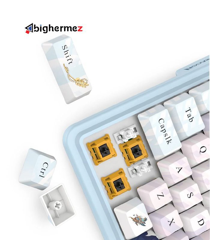 یکی از خاصترین جنبههای این کیبورد، ظاهر آن است. ترکیب رنگ آبی روشن با طرحهای خاص و الهامگرفته از انیمه، جلوهای منحصر به فرد و جذاب به K728 PRO AK میبخشد. این طراحی فراتر از یک ابزار گیمینگ، به یک قطعه هنری روی میز شما تبدیل میشود. این ترکیب رنگی، به ویژه برای کسانی که به دنبال یک ستاپ گیمینگ متفاوت و بیانگر شخصیت خود هستند، یک انتخاب عالی محسوب میشود. این زیبایی بصری، به همراه نورپردازی RGB پویا، یک تجربه کاربری کامل و لذتبخش را فراهم میآورد.
