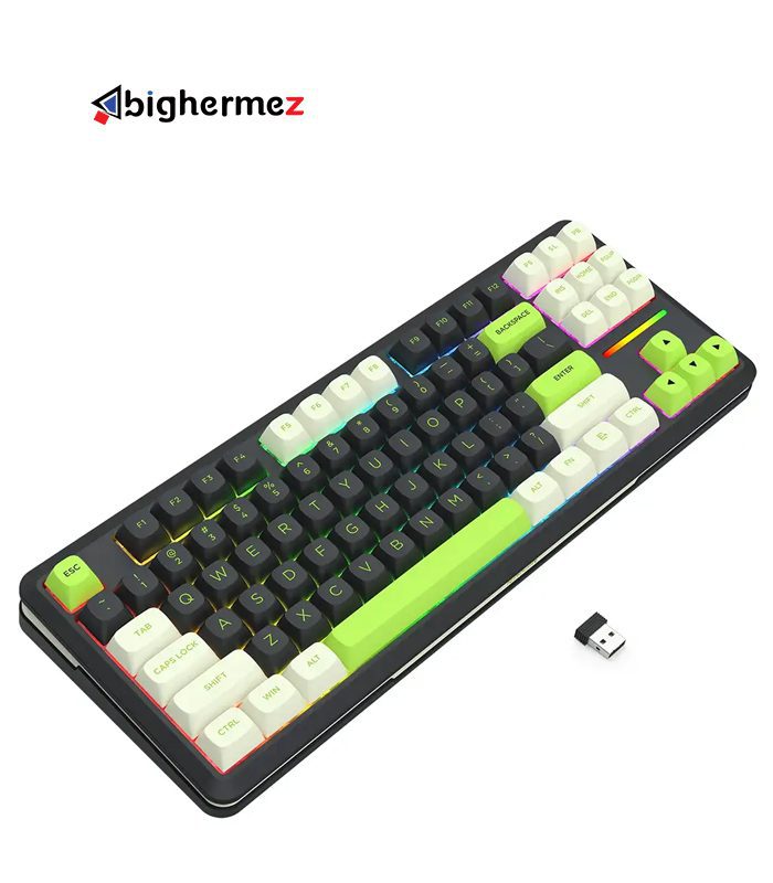 یکی از نقاط قوت اصلی این کیبورد، قابلیت اتصال سهحالت (Tri-Mode) است. شما میتوانید از طریق پورت USB به صورت باسیم، از طریق دانگل 2.4{GHz} با سرعت بالا و تأخیر بسیار کم ، و یا از طریق بلوتوث برای اتصال آسان به موبایل و تبلت استفاده کنید. دانگل 2.4{GHz} تضمینکننده یک اتصال بیسیم بسیار پایدار است که تا 10 متر برد عملکرد دارد. این آزادی عمل، تجربه کاربری را به شکل چشمگیری بهبود بخشیده و میز کار شما را از شر کابلهای مزاحم خلاص میکند.