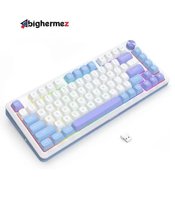 مدل K681 WBP با ترکیب رنگی جذاب سفید، آبی و بنفش (White, Blue, Purple)، از کیبوردهای مشکی و خاکستری خسته‌کننده فاصله گرفته و به یک عنصر دکوراتیو در ست‌آپ شما تبدیل می‌شود. این کیبورد از طراحی ارگونومیک بدون صفحه استراحت مچ (Palm Rest) برخوردار است که به کاربر اجازه می‌دهد تا صفحه استراحت مچ مورد علاقه خود را به صورت جداگانه انتخاب کند. فرم فشرده 75% و پایه‌های قابل تنظیم، به شما کمک می‌کنند تا زاویه کیبورد را مطابق با راحتی دست خود تنظیم کنید. همچنین، این کیبورد با سیستم‌عامل‌های مختلف از جمله Windows، macOS و Linux سازگاری کامل دارد و اتصال بلوتوث آن می‌تواند به طور همزمان به چندین دستگاه متصل شود.